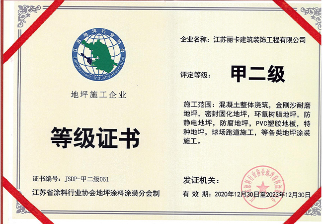 江蘇麗卡建筑裝飾工程有限公司是一家專業(yè)化、多元化公司;公司致力于工業(yè)地坪材料工程和施工場地的開發(fā)設計、銷售施工及保養(yǎng)維護。